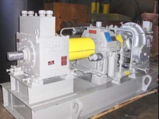 New/Unused 813 HP (700 HP) Coppus/Dresser-Rand. Model RLA23E non-condensing mechanical drive steam turbine. 493/544 psig @ 507°F, 47-55# BP exhaust, 3558/1750 RPM. Lufkin reduction gear. All mounted on common structural steel base with Marland Clutch and Oil Cooler. Manufactured 2007.