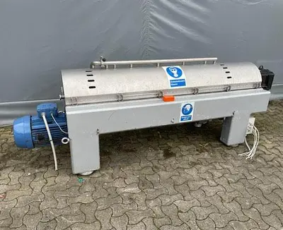 Used Alfa Laval model Foodec 209 stainless steel decanter centrifuge. Bowl diameter 280mm/168mm. 1.2kg/dm3 maximum solids density. Maximum bowl speed 4,040rpm. Maximum 100 deg.c. working temperature. Unit includes drive/gearbox. Unit alos includes control panel.