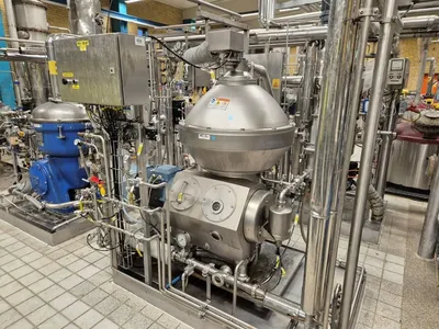 Used Alfa Laval stainless steel PX65 disc stack centrifuge reportedly ATEX. Unit has an approximate throughput capacity of 15m3/h with a bowl volume of approximately 15 litres with a bowl speed of 7,450RPM. Unit is mounted on a stainless steel frame. Unit includes mixer and Grundfos pump.