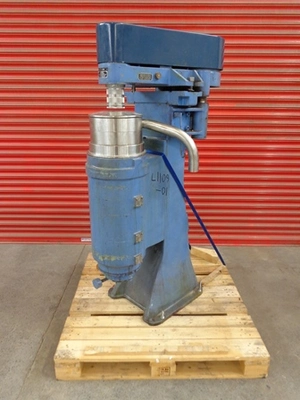 Used Alfa Laval Sharples model AS26 316 stainless steel super centrifuge with clarifier design bowl. Maximum bowl speed 15000 rpm with 15500 G-force. Maximum sludge density 2.0 kg/dm3 and 5.3 litre solids holding capacity. Belt driven by 3 kW 220-240/380/415 volt 3/50 2920 motor. Bowl 124mm diameter and includes spare bowl.