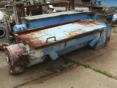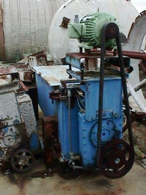 Used Black-Clawson single screw hydradenser extractor. 16″ diameter X 6′ long. 20 HP V-belt drive. 3/60/230-460 volt, 1775 rpm motor. Connected to a Falk reducer, 25.7:1 ratio.