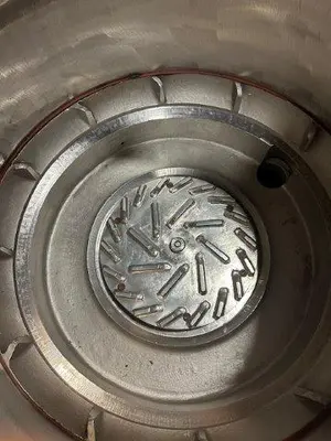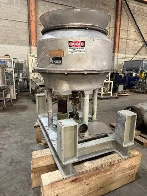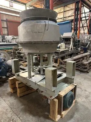Used Black Clawson stainless steel pulper, 36″ (914 mm) nominal size. Bottom discharge with rotor and motor. Internal diameter approximately 39″ (991 mm), internal height 28″ (711 mm). Approximate volume 18 cubic feet (509 liters). Serial number 702919.