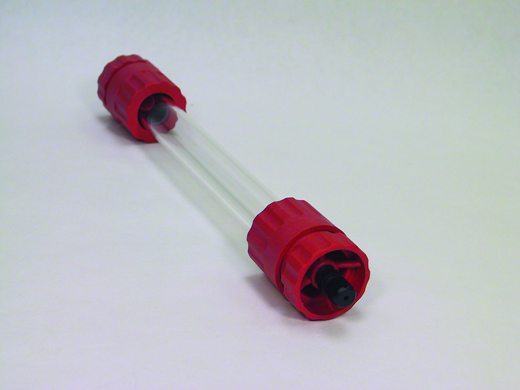 Standard C-series columns have a fixed volume, but they can be upgraded through the addition of flow adapters. These work to keep bed height constant and protected from insoluble particles during chromatography. Adjustable flow adapters are available for 10 mm (AC 10), 16 mm (AC 16), and 26 mm (AC 26) diameter C columns.