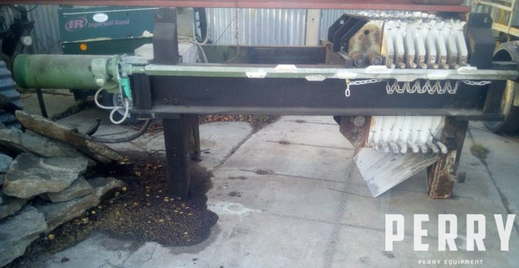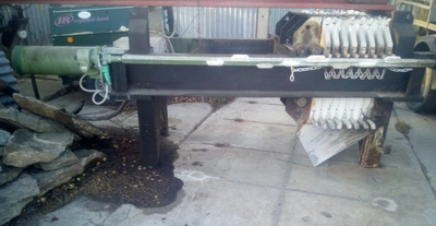 Used chamber filter press made by. Filter has 8pcs polypropylene 800 X 800 mm recessed plates. Hydraulic closing, With hydraulic unit. Central feed. Open delivery.