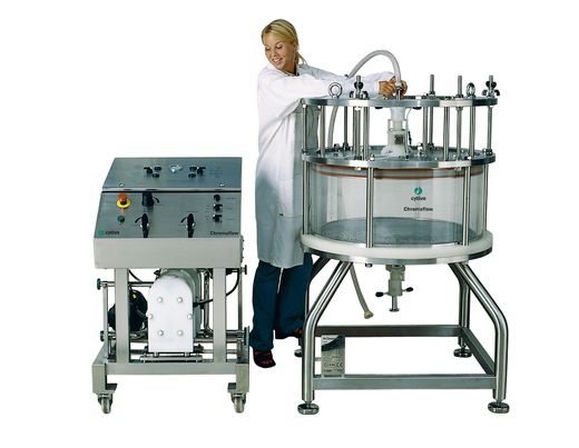 A family of convenient process-scale columns with a patented nozzle in the top and bottom of the column that allows packing, unpacking, and cleaning in place. Chromaflow columns are a natural choice when scaling up from BPG columns.