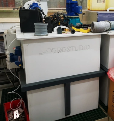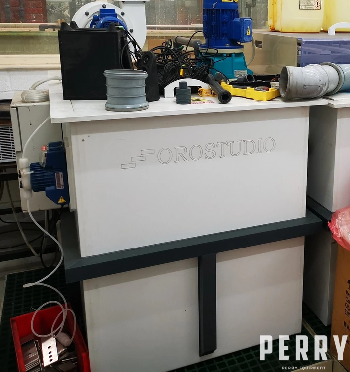 Little used Orostudio ORS EAG 150 electrolytic silver refining plant built in 2014 with capacity 30 to 150 kg/day refining of silver to a minimum purity of 99.95%. Major equipment is (4) electrolytic cells. Materials of construction are PVC, Titanium and 304 stainless steel.
