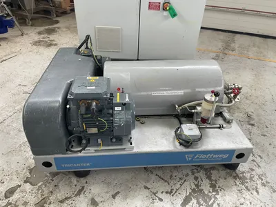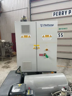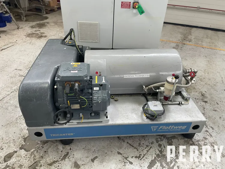 Used Flottweg model Z23-4-441 stainless steel Tricanter centrifuge. Maximum bowl speed 5,500rpm. Sediment density 2.9kg/dm3. Maximum tempurature 100 deg.c. Main drive rated 11kw/13kw, 50/60hz, 2929 to 3524RPM. Back-drive rated 4kw/4.6kw, 50/60hz, 2900 to 3480RPM. Unit includes main control panel with local control panel.