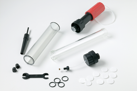 Glass construction, with no metal parts, allows visual observation at all times.