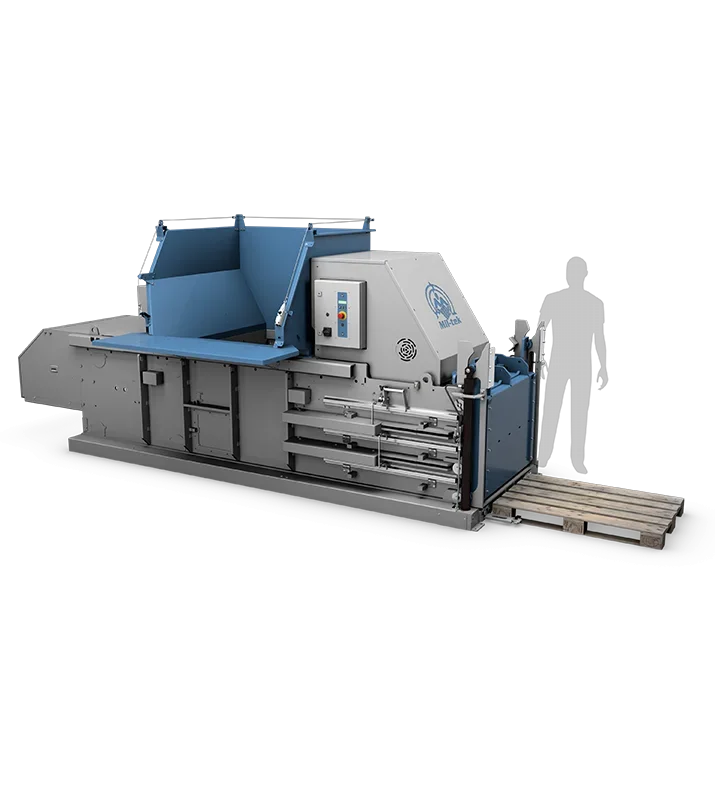 A large opening allows for waste to be continuously and safely loaded into an area of one cubic metre, where it will continuously be pressed. A pressing cycle of just 28 seconds ensures waste can continuously be loaded into the machine.