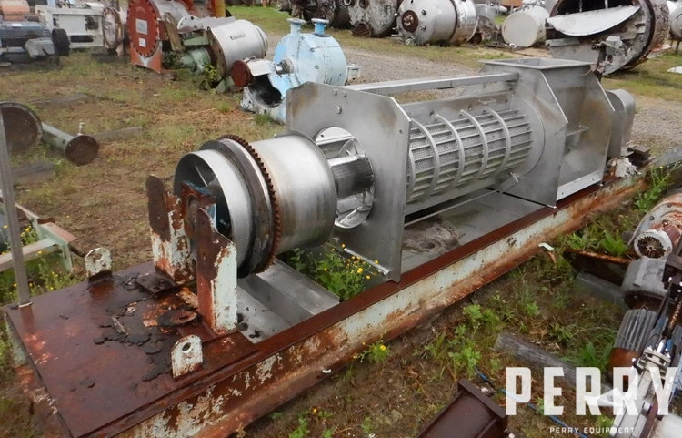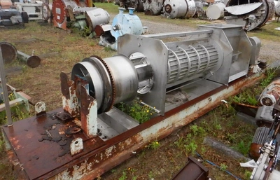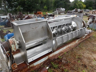 Used Rietz model RSP-16-K2 horizontal continuous screw dewatering press. 16″ diameter screw. Stainless steel contact parts. Equipped with 3 HP Cone motor.