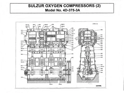 (2) Rebuilt SULZUR oxygen compressors model 4D-375-3A. The flow rate for each compressor is about 743 TPD.