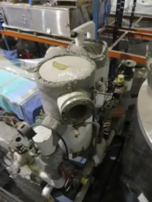 Used TCU Kam Thermal Equipment heat exchanger skid, (1) heat exchanger shell rated 25 FV at 267 degs F, Tubes rated 150 psi at 267 deg F. stainless steel heads, 16″ x 6′, U-tube, 15 HP Goulds Pump, Valves