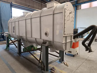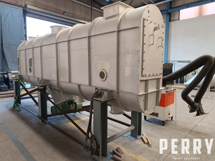 Unused Andritz model VDC480/800 316L stainless steel fluid bed dryer / cooler. Unit measures approximately 6,400mm long x 1,200mm wide, approximately 4.8sqmt surface area. Unit rated between 1,900 to 10,110m3/hr throughput (product dependent). Unit includes heater, coolers, blowers, filters, cyclones, rotary lock valves, pipework and instrumentation. Additional information and technical specification available upon request.