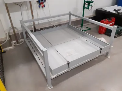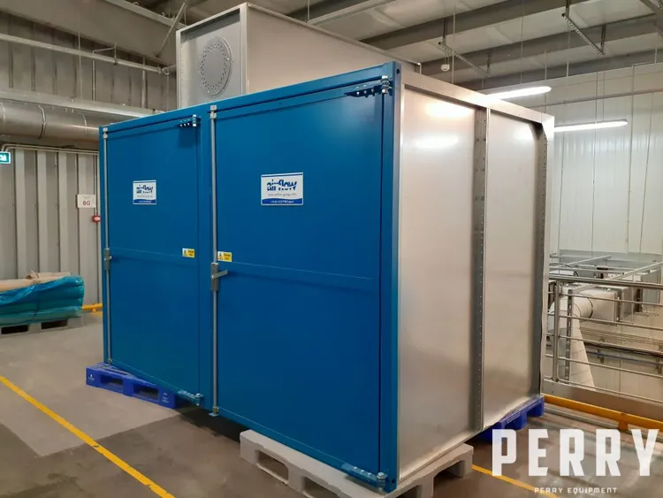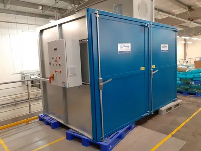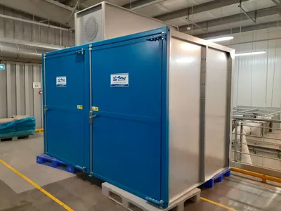 Unused atmospheric cabinet dryer by Airflow Premier Industrial Oven (UK). Chamber construction mild steel. Inside dimensions of drying chamber: W 3250 mm x D 1850 mm x H 2050 mm. Working temperature range up to 60C. Dryer is equipped with 2.2 kW centrifugal fan, whch can give air circullation up to 4.2 air change per minute. Heating – electric – 15 x el heaters each with power 3 kW. Outside dimensions: W 3500 mm x H 2900 mm x D 2200 mm. Machine has local control panel.