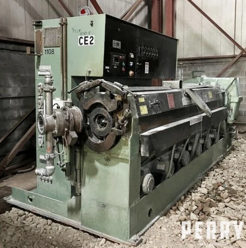 – 4.5″ 30/1 L/D Davis Standard Thermatic vented extruder. Model 45IN45HT, serial V02235, SO #59611, new 1997. Has air cooled barrel, jacketed feed section. Driven by a 150 hp DC motor. Gearbox rated 365 hp, 17.4:1 gearbox ratio, 1.5 service factor. Includes temperature control panel.
