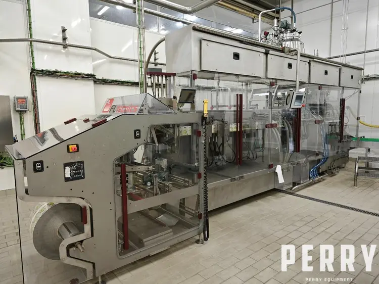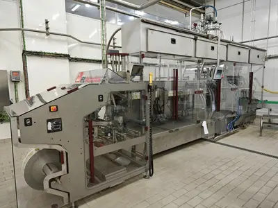 Used baby food packaging line with the capacity 600 kg per hour (1322 lbs/h). The line is designed to package pure-like baby food products into the doy-pack packaging. The reported minimum size of the doy pack package is 85×100 mm, the max size is 110×300, max volume is 350 ml.