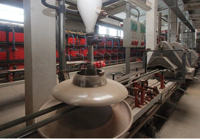 – Natural gas fed SITI F1-NH 2 channel roller kiln. Built in 2 levels to do double firing. Length is 35m, with production capacity approximately 1 million m2 / year.