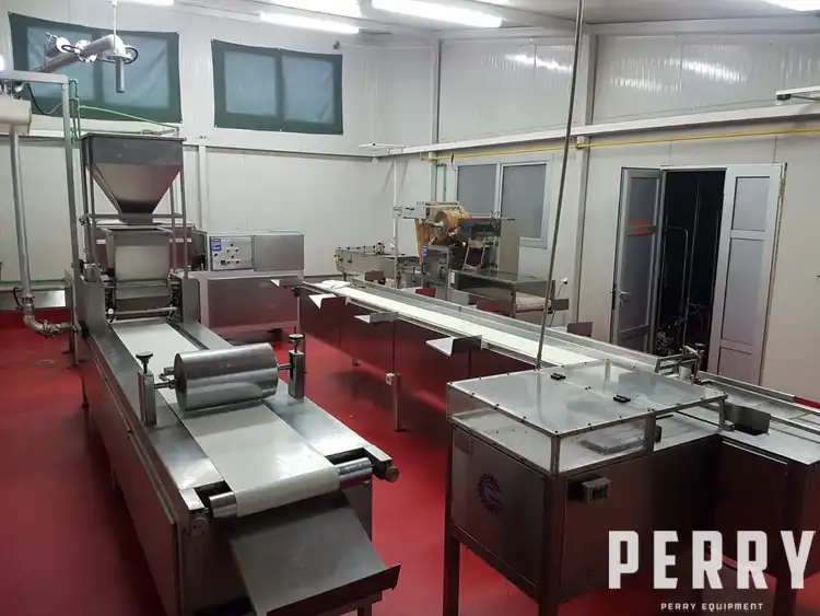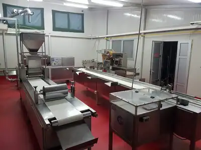 Used semi-automatic wafer biscuit production line with capacity 300 kg/hour, made in 2005 by Gocmen (Turkey) and shut down in 2019. Main equipment includes: