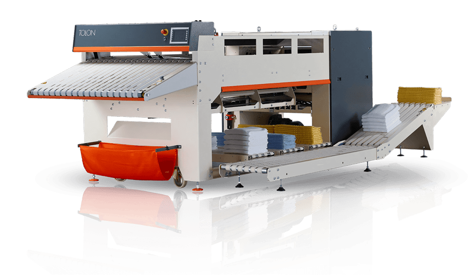 TFF200 transfers the folded towels to the packing station by means of the flat-pack delivery conveyer.
