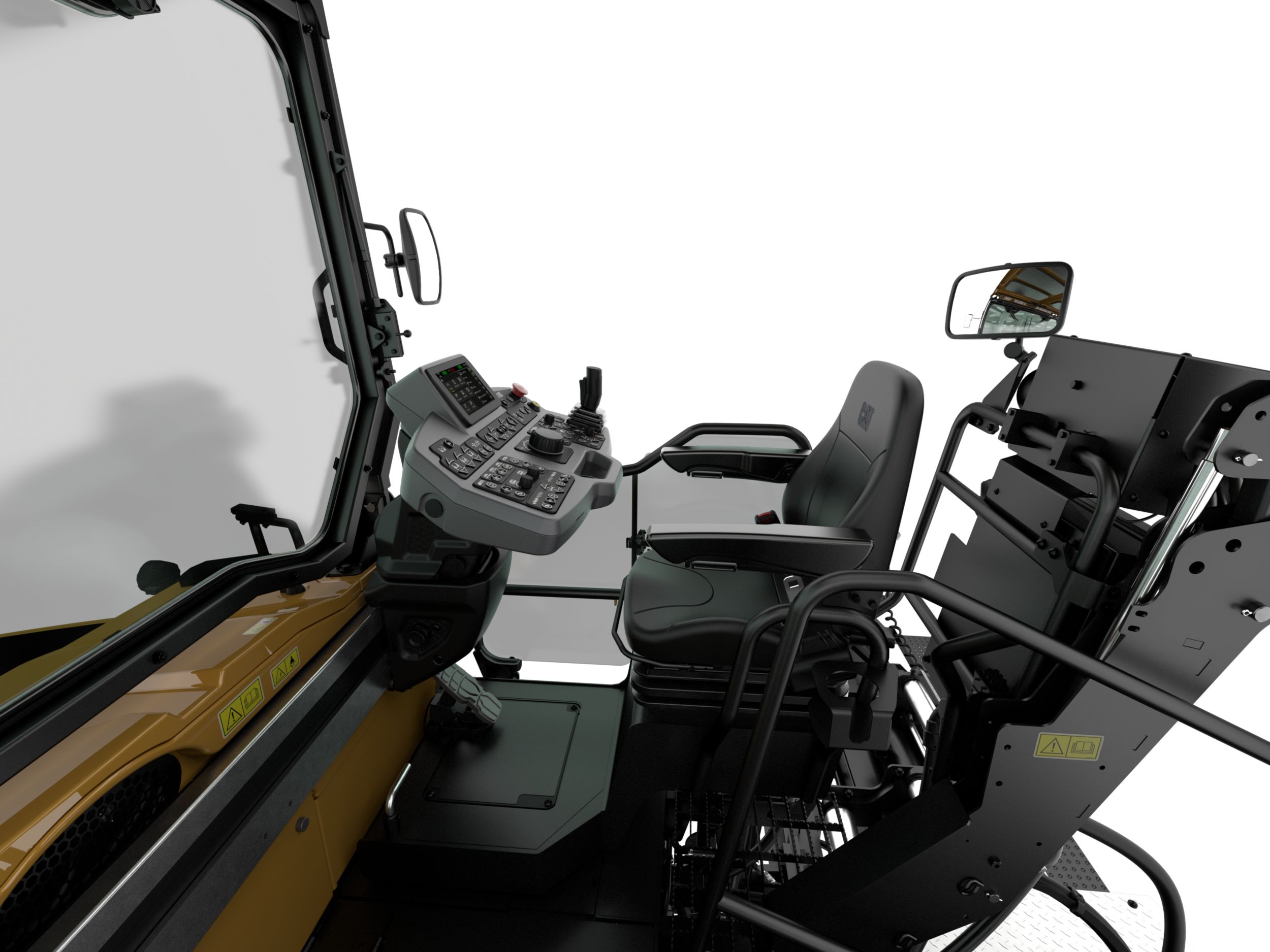 Dual independent seats swing-out 40º beyond the platform for good visibility to curbs and obstacles Optimized height and integrated exhaust provide unobstructed visibility around the machine