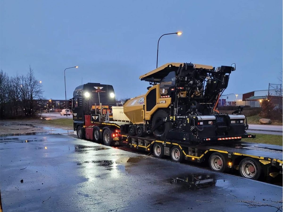 Paver and screed combination weight of 16.3 mt (35,926 lb) enables easy transport on a variety of trailer types