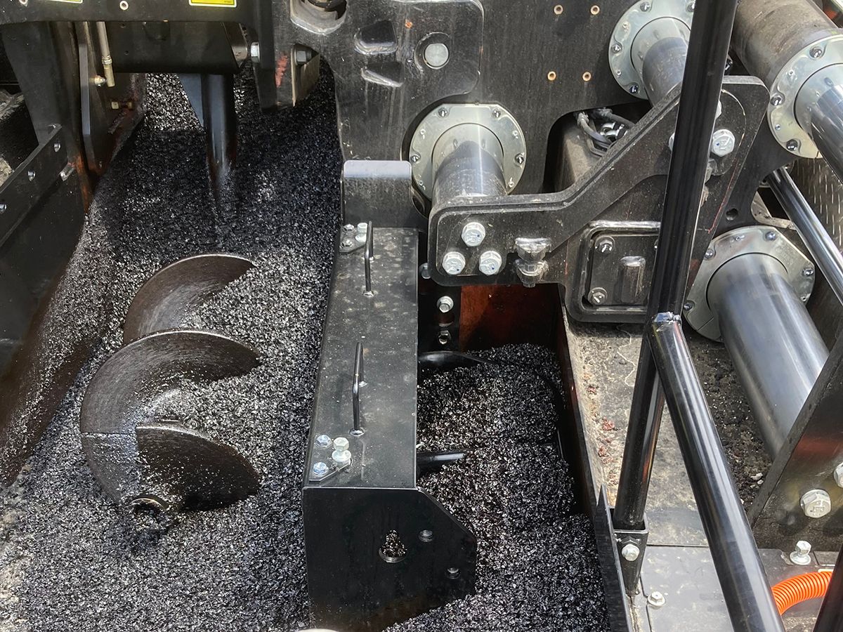 Feeder system design with 355 mm (14″) diameter augers provides consistent material flow across the screed for efficient flow at both narrow and wide paving widths