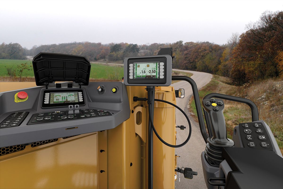 The optional grade control box can be positioned in the operator station or on the back of the machine to enable interaction with the grade system from the ground level