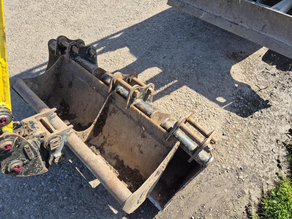 Tracked zero tail excavator with quick hitch and full set of buckets.