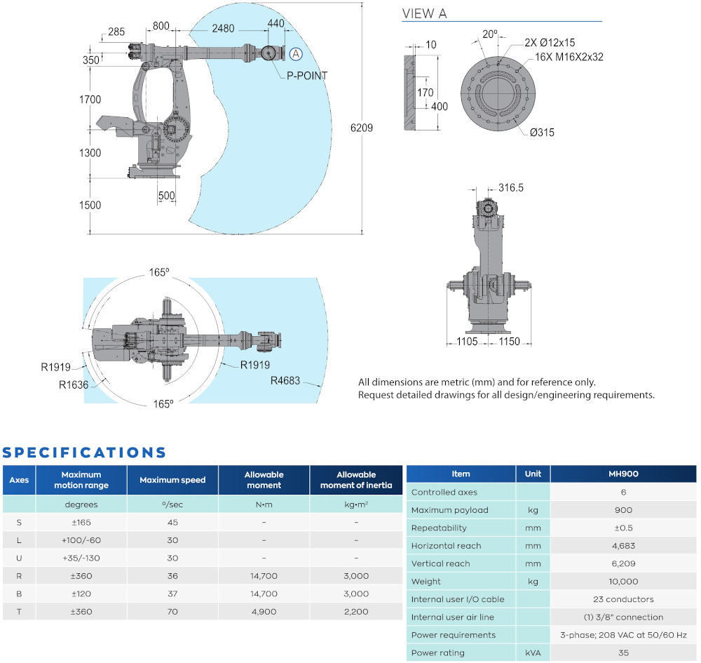 MH900 - Large-Reach, Heavy Payload Robot