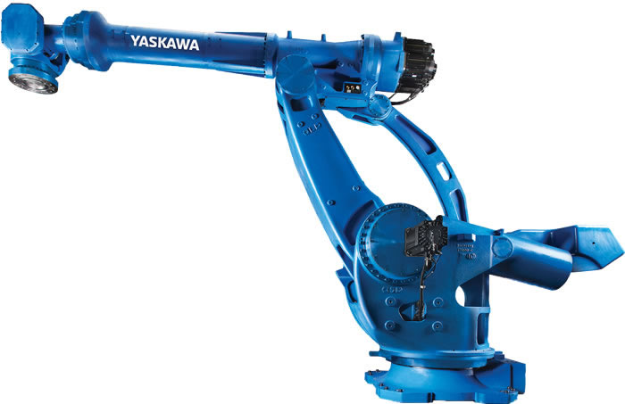 Powerful and efficient, the MH900 is a heavy-duty robot for high payload handling tasks. Ideal for machine tending and part transfer applications, this high-performance robot offers a wide work envelope and high moment and inertia ratings to reliably move large weldments, car bodies, agricultural equipment, pallet-loads of bricks and more. Jigless tasks are also easily accommodated. The DX2900 controller provides ease of programming, and enhanced safety with control reliable software for guarding (FSU) is featured.