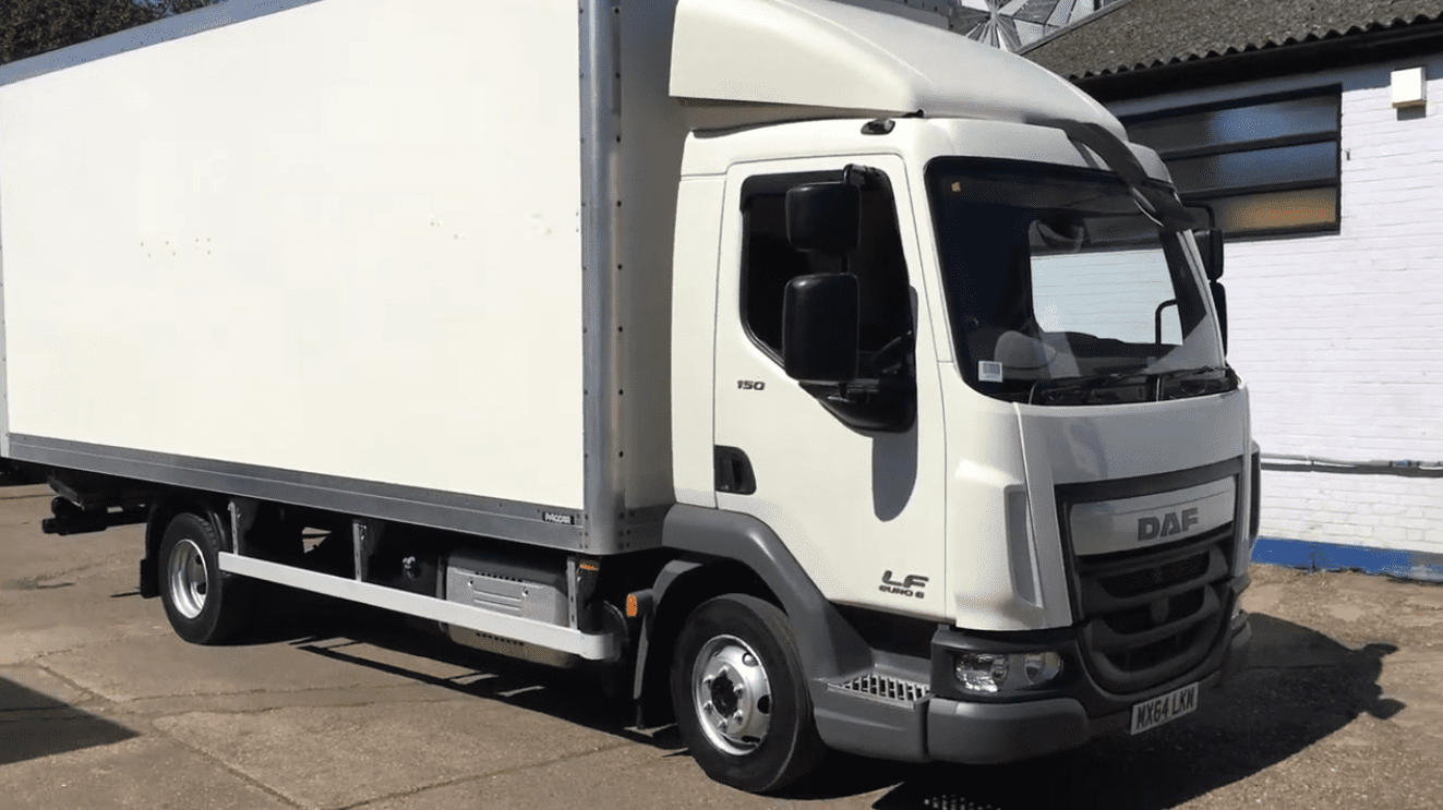 Looking for a good-quality pre-owned DAF / 45.150 – 2014 (64) – EURO 6 7.5 ton GVW, 20ft Box, Day cab, Date Registered: 24/10/2014, Approx (kms): 119,151, 5 speed manual, New MOT, 1000 kgs Palfinger tuckaway, Roller shutter doors rear, Engine Cc 4500, Bhp 150, Euro 6.