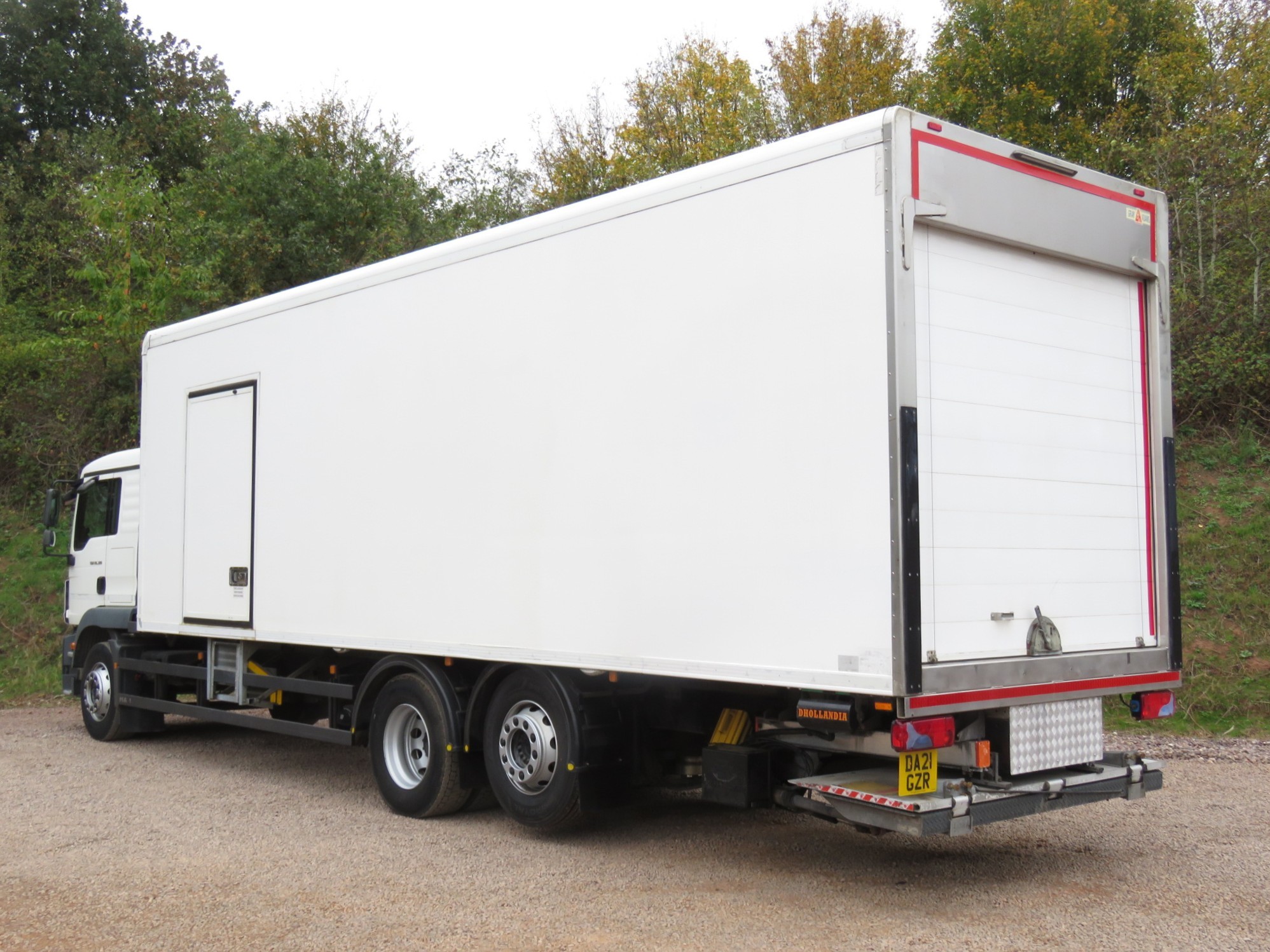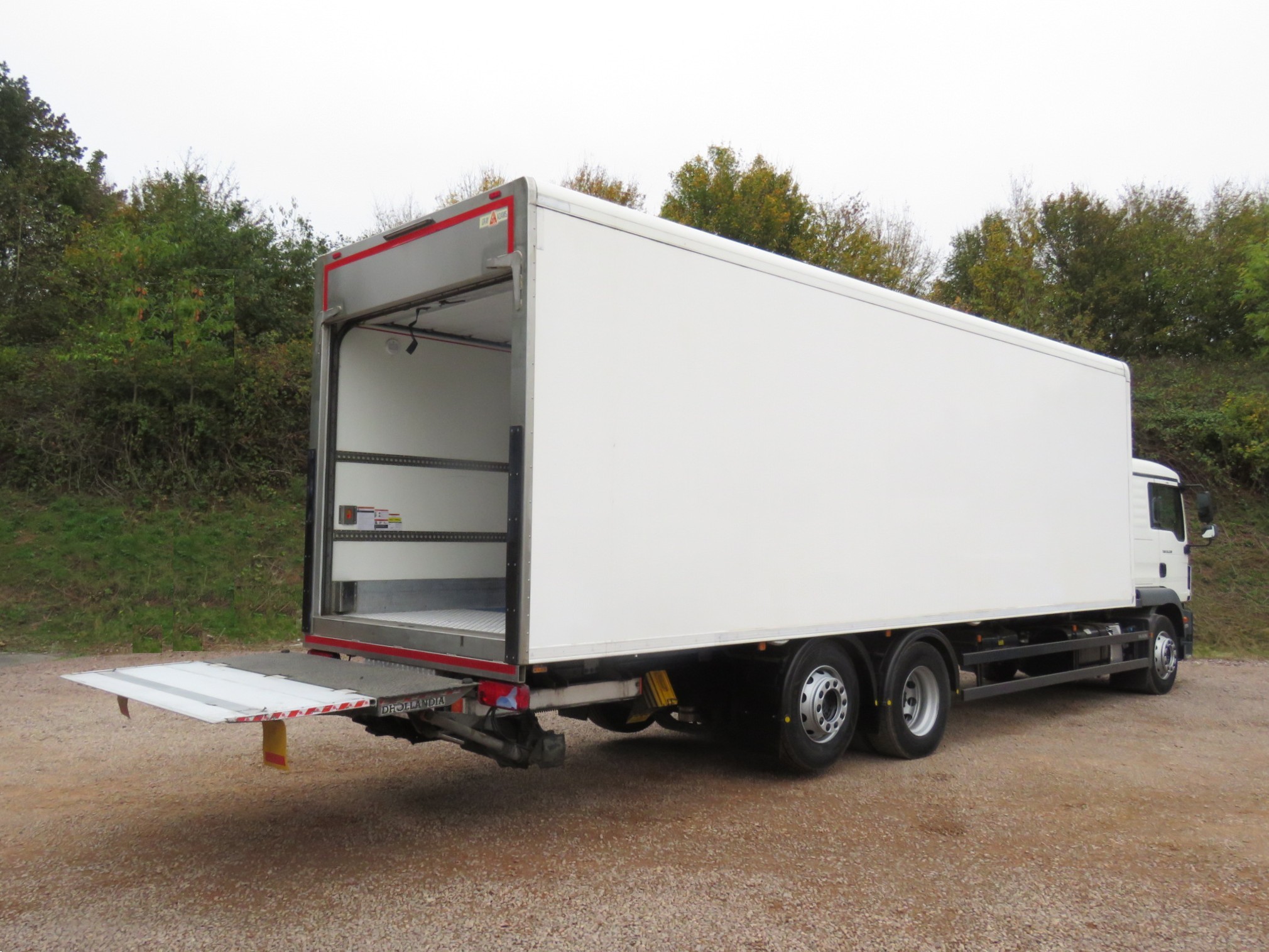 TGM 26.320 , Reg No: DA21GZR , Description: Euro 6 – 6×2 Rear Lift & Steer Dual Evap Fridge Box with Slide Out Tail Lift !! , Drive: 6×2